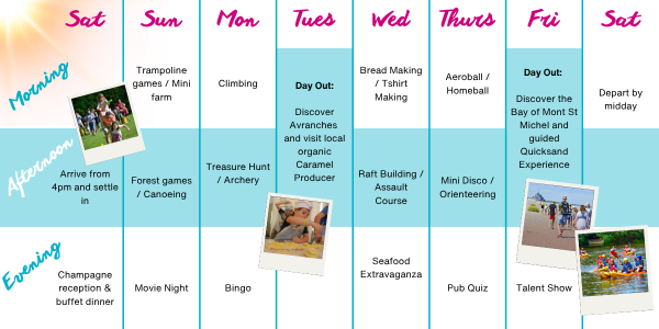 We’ve also created a range of family activities to enjoy together, including our popular assault course, friendly competitions, and visits to beautiful Mont Saint‑Michel, complete with a guided bay walk and unique quicksand experience.